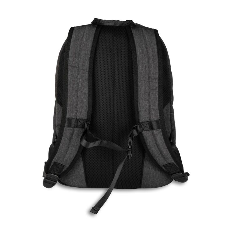 100% polyester, 600D backpack with zip entry main compartment and front pocket, inside mesh pocket with elasticated binding, padded back panel and front embroidery