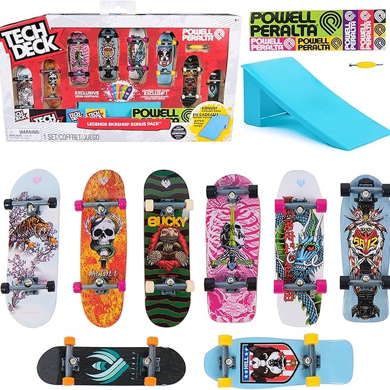 - SKATE WITH AUTHENTIC GRAPHICS Tech Deck Sk8shop bonus pack includes 8 fingerboards with authentic graphics of key skateboard houses